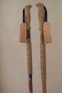 Each set is made from sustainably harvested, heat-treated bamboo—stronger than aluminum by weight. Finished with full-grain waxed leather straps, cork grips and wrap, and an attitude that’s more outlaw than on-piste.