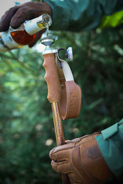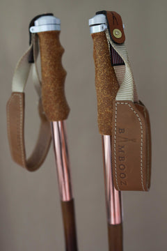 Our flagship model - built for the rowdy, the rebellious, and the refined. We redesigned the ski pole from grip to tip - then added a copper flask in each pole. American leather, cork grip, sustainably grown and sourced bamboo. Eco-conscious, stronger than aluminium, 100% swagger.